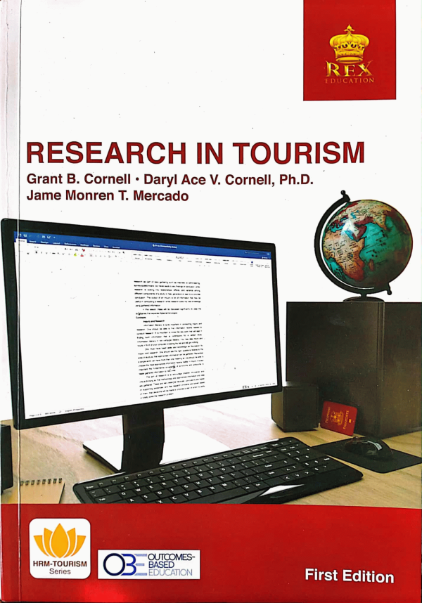 Research in Tourism is a book in the tertiary level designed to provide necessary theoretical and conceptual approaches in research conceptualization, writing, and dissemination, specifically in the field of tourism, hospitality, and transportation. Current documents and references are used to establish the frameworks, technical terminologies and definitions, and arguments in this book. We also shared ourpersonal experiences and perspectives on tourism, hospitality, and transportation research writing and dissemination.