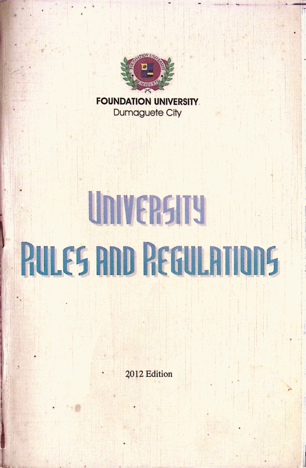 University Rules and Regulations (2011) provides a comprehensive overview of institutional policies governing student conduct, academic processes, administrative procedures, and university operations at Foundation University. It serves as the official reference document for students, faculty, and administrators.