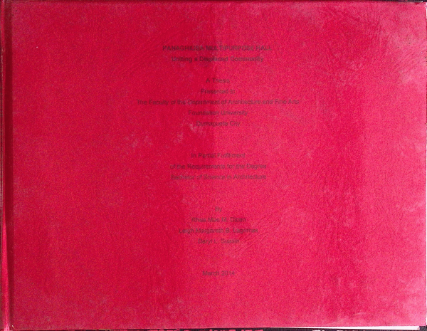 Panaghiusa multipurpose hall : uniting a displaced community / Rhea Mae M. Dicen, Leigh Margareth B. Lagrimas, and Daryl L. Suasin.