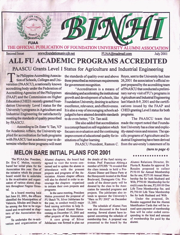 Binhi : publication of the foundation university alumni association inc. / Foundation University