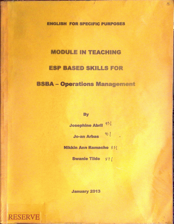 Needs analysis in ESP for BSBA – Operations Management / by Josephine Abril, Jo-an Arbas, Nikki Ann Ramacho and Swanie Tilde