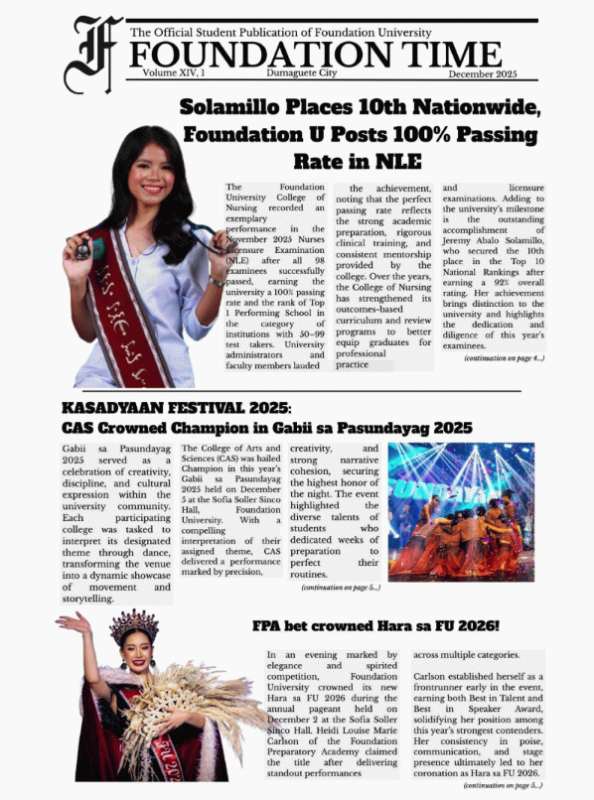 This issue of Foundation Time features news, editorials, feature articles, and creative works reflecting student life, campus activities, and current issues at Foundation University. It serves as a platform for student expression and information dissemination within the university community.