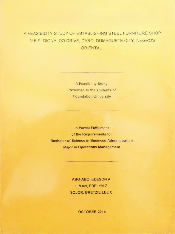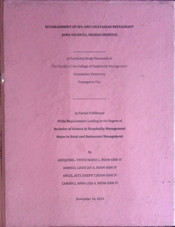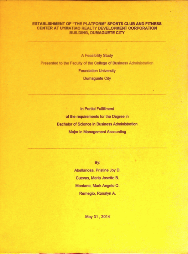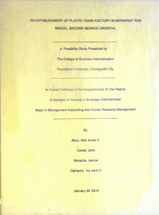 Dissertation note: Undergraduate feasibility study (Business Administration Major in Management Accounting, Bachelor of Science in) -- Foundation University, Dumaguete City, Philippines, 2015.